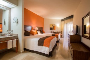 Luxury Suites 1 Bedroom: Private room with king size bed, A/C with individual remote control, flat screen, 2 full bathrooms with shower, hair dryer, vanity mirror, iron and board, safe deposit box, living room with sofa bed, kitchenette fully equipped with granite countertop, fridge includes daily refreshments: variety of snacks, 4 bottles of water 500 ml, 4 Coke, 2 Diet Coke, 2 Sprite, 6 beers 12 OZ can, 1 White Rum 50 ml, 1 Tequila 50 ml. Room Service 24 hrs. Pool view and terrace.