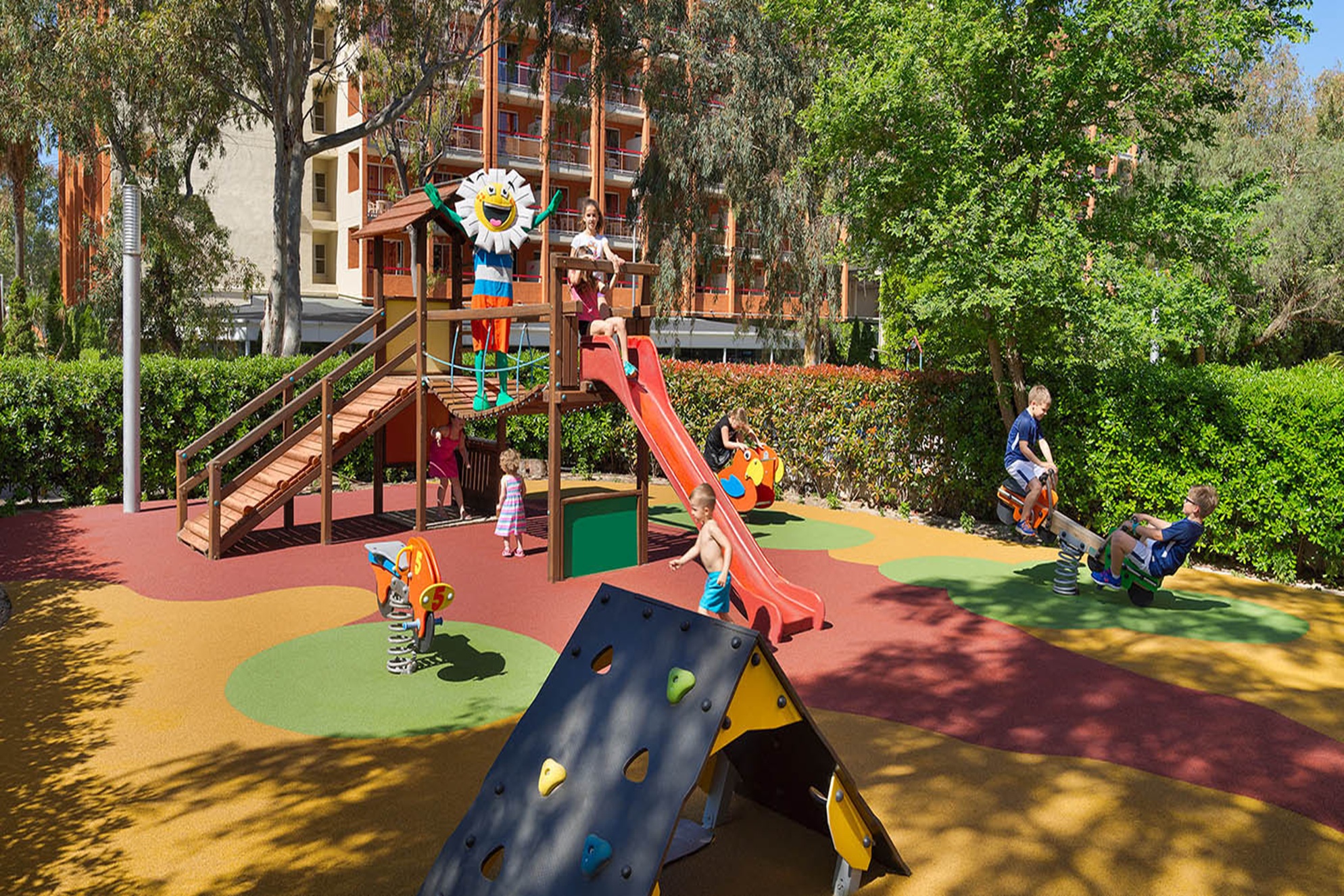 351 rooms Complimentary Wi-Fi throughout the hotel and free Internet Corner Swimming pool with waterfall, jacuzzi and hydraulic lift Terrace on the 6th floor with sun lounger area, jacuzzi and views of PortAventura & Ferrari Land (access for adults only) Despacio Beauty Centre with a heated swimming pool, jacuzzi, sauna, Turkish bath, treatment and gym Daisy Club and Blue Team Mini playground 2 meeting rooms Boutique Covered car park ($, unattended)