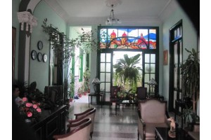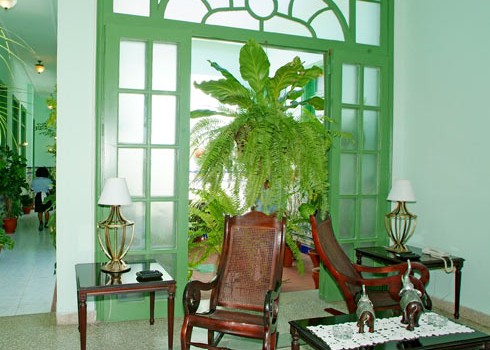 Just a few feet from popular Céspedes Park, in the heart of Santiago de Cuba, this hotel—built in the eclectic style—has several intimate inner patios and a homey atmosphere.