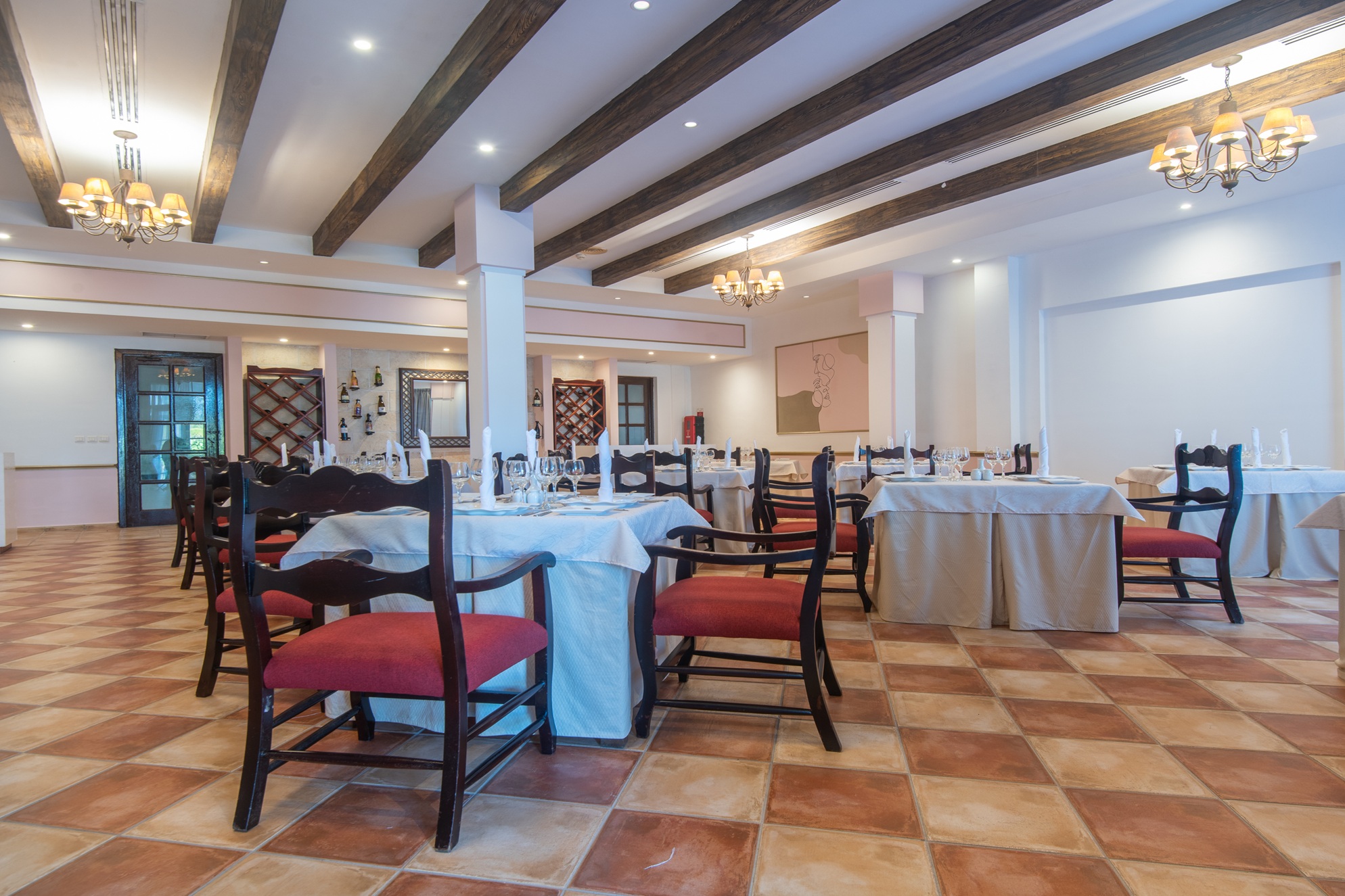 - The Suites feature a spacious balcony, living room, dining area, bedroom, and bathroom. A French double bed, central air conditioning system, minibar, iron and ironing board, telephone in the living room, bathroom, and bedroom, international satellite TV in the living room and bedroom, digital safe, bathtub, WC, and hairdryer.