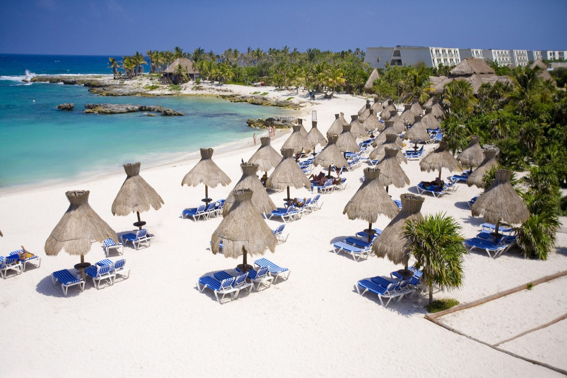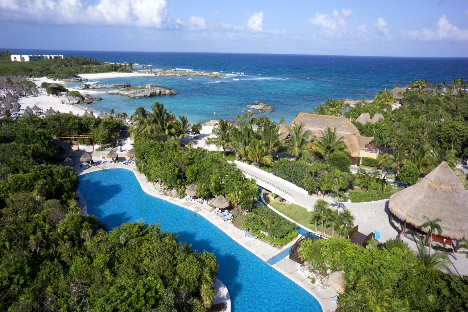 The large resort lies on a beautiful stretch of virgin beach extending some two miles along the coast, and boasts an authentic and perfectly conserved Mayan ruin within a heart shaped inlet; one of the most beautiful spots for snorkel lovers.