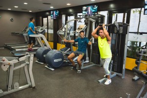 - un étage principal avec salle de sport (appareils de cardio-training, poids et haltères, salle de cours de spinning, de yoga et de Pilates).